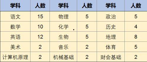 根据最新爆料,本次朔州教师招聘共涉及多个学科,包括语文、数学、英语、物理、化学、生物、历史、地理、政治、音乐、美术、体育等。具体招聘岗位及人数如下:
